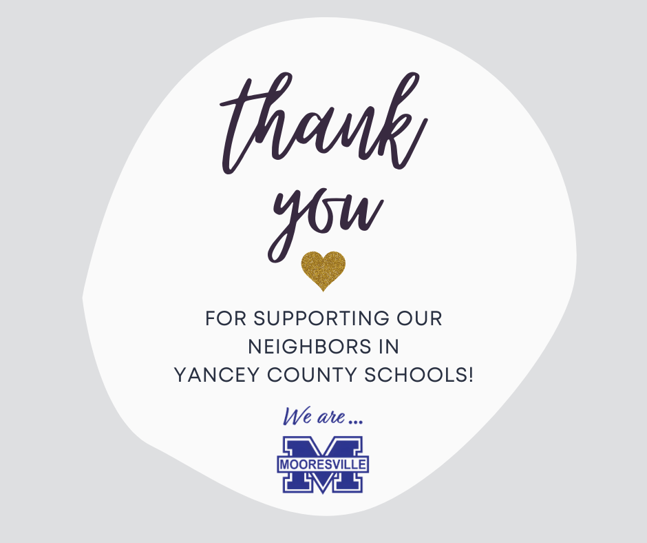 "We are deeply grateful for the generosity of the Mooresville Graded School District students and families. Each day, we continue to navigate numerous challenges, from infrastructure and rebuilding efforts to instructional needs and the harsh winter weather. Despite these difficulties, your kindness and support give us hope as we work to overcome the devastation caused by Hurricane Helene. Thank you for your thoughts, encouragement, and for keeping our incredible students in the mountains in your prayers." Kathy Amos, Yancey County Schools Superintendent