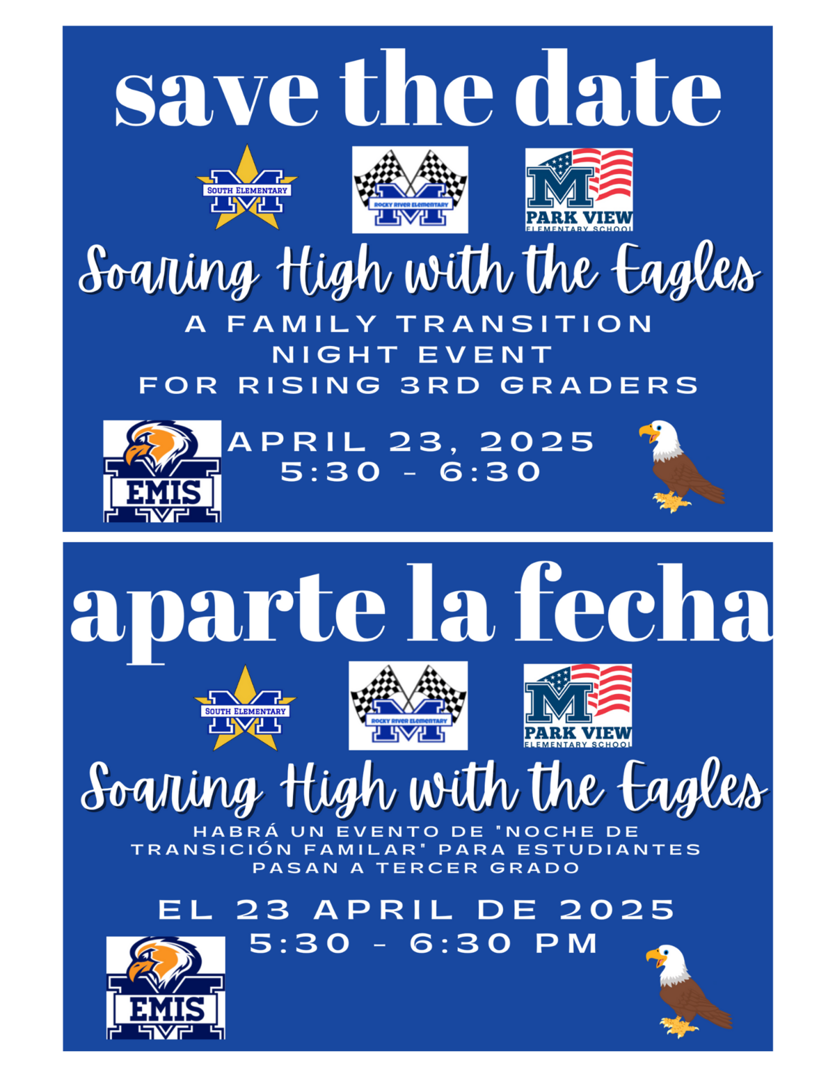 Will you be soaring with the EMIS Eagles? Join us on Wednesday, April 23 from 5:30 - 6:30pm at East Mooresville Intermediate School, 1711 Landis Hwy, Mooresville, NC 28115.